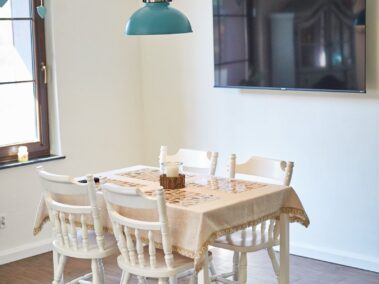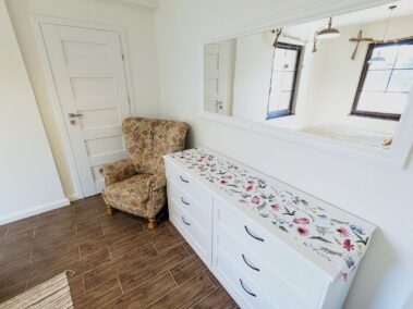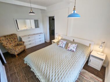 50 m2 salon z w pełni wyposażonym aneksem kuchennym sypialnia łazienka teras z kompletem mebli wypoczynkowych cudowny widok na jezioro Project navigationNastępneNext project:Apartament srebrny